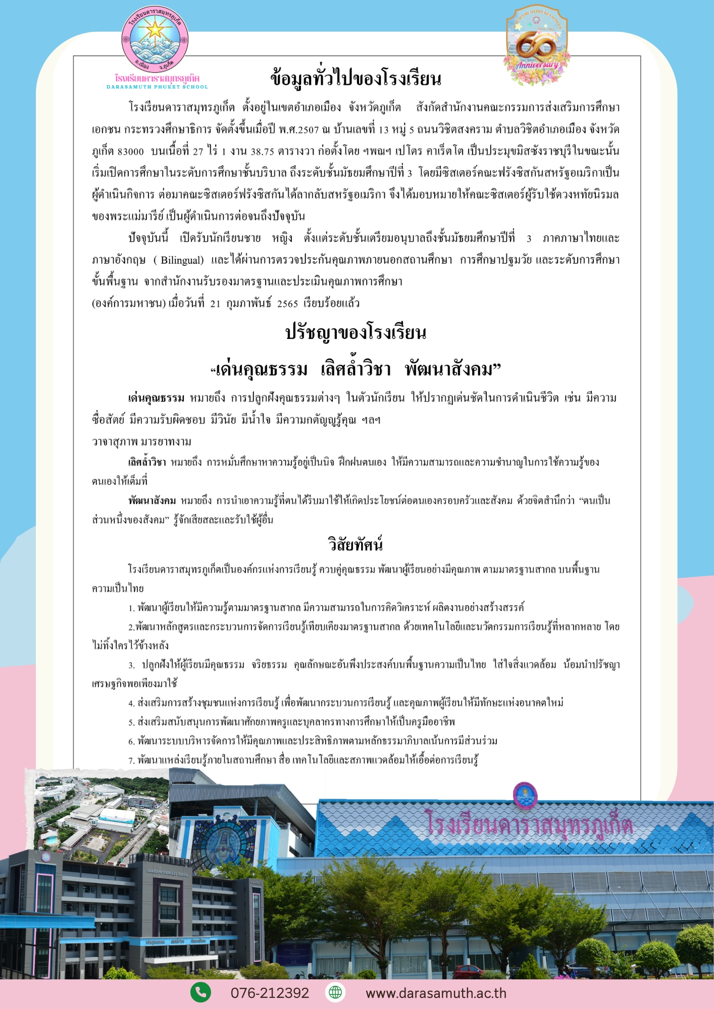 โรงเรียนดาราสมุทรภูเก็ต 13 ถ.วิชิตสงคราม ต.วิชิต อ.เมือง จ.ภูเก็ต 83000 โทร 076-212392