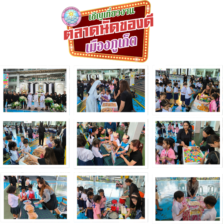 โรงเรียนดาราสมุทรภูเก็ต"ตลาดนัดของดีเมืองภูเก็ต" 20 พฤศจิกายน 2568 เพื่อเด็กนักเรียนได้รับประสบการณ์ตรงในการปฏิบัติจริงจากการ ซื้อ-ขายสินค้า เรียนรู้จำนวนเงิน เรียนรู้ชื่อขนมพื้นเมืองจังหวัดภูเก็ตเพื่อสืบสานและอนุรักษ์ภูมิปัญญาท้องถิ่นจังหวัดภูเก็ตอีกด้วย