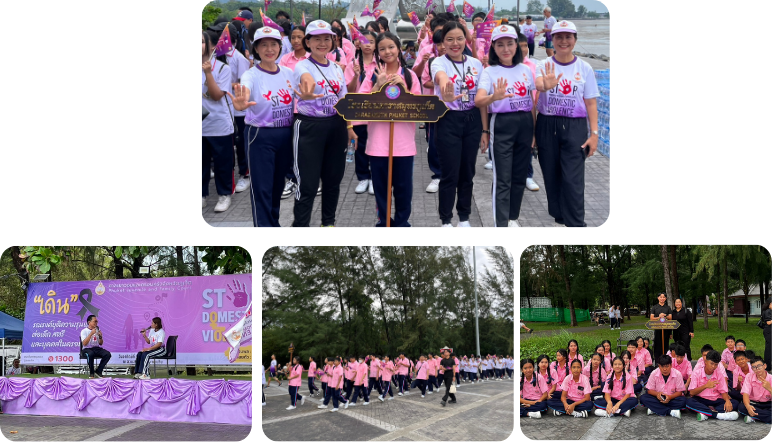 โรงเรียนดาราสมุทรภูเก็ต เมื่อวันที่ 23 พฤศจิกายน 2568 นักเรียนชั้นมัธยมศึกษาปีที่ 1 เข้าร่วมเดินขบวนในโครงการเดินรณรงค์ยุตติความรุนแรงต่อเด็ก สตรี และบุคคลในครอบครัว ณ บริเวณสวนสาธารณะสะพานหินตัวแทนนักเรียนโรงเรียนดาราสมุทรภูเก็ตร่วมกิจกรรม "เดิน - วิ่ง รณรงค์ยุติความรุนแรงต่อเด็ก สตรี และบุคคลในครอบครัว" ขึ้นที่สวนสาธารณะสะพานหิน โดยศาลเยาวชนและครอบครัวจังหวัดภูเก็ตเป็นผู้จัด เพื่อสร้างความตระหนักรู้และประชาสัมพันธ์การป้องกันและแก้ไขปัญหาความรุนแรงในครอบครัว